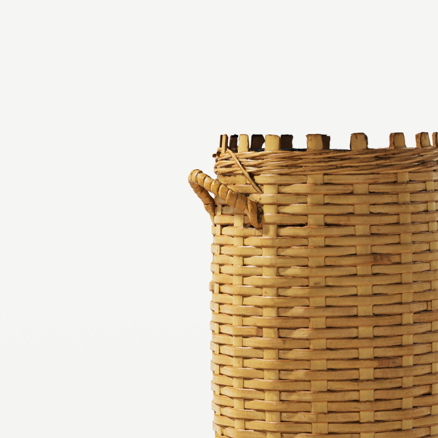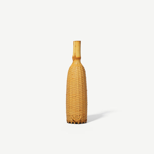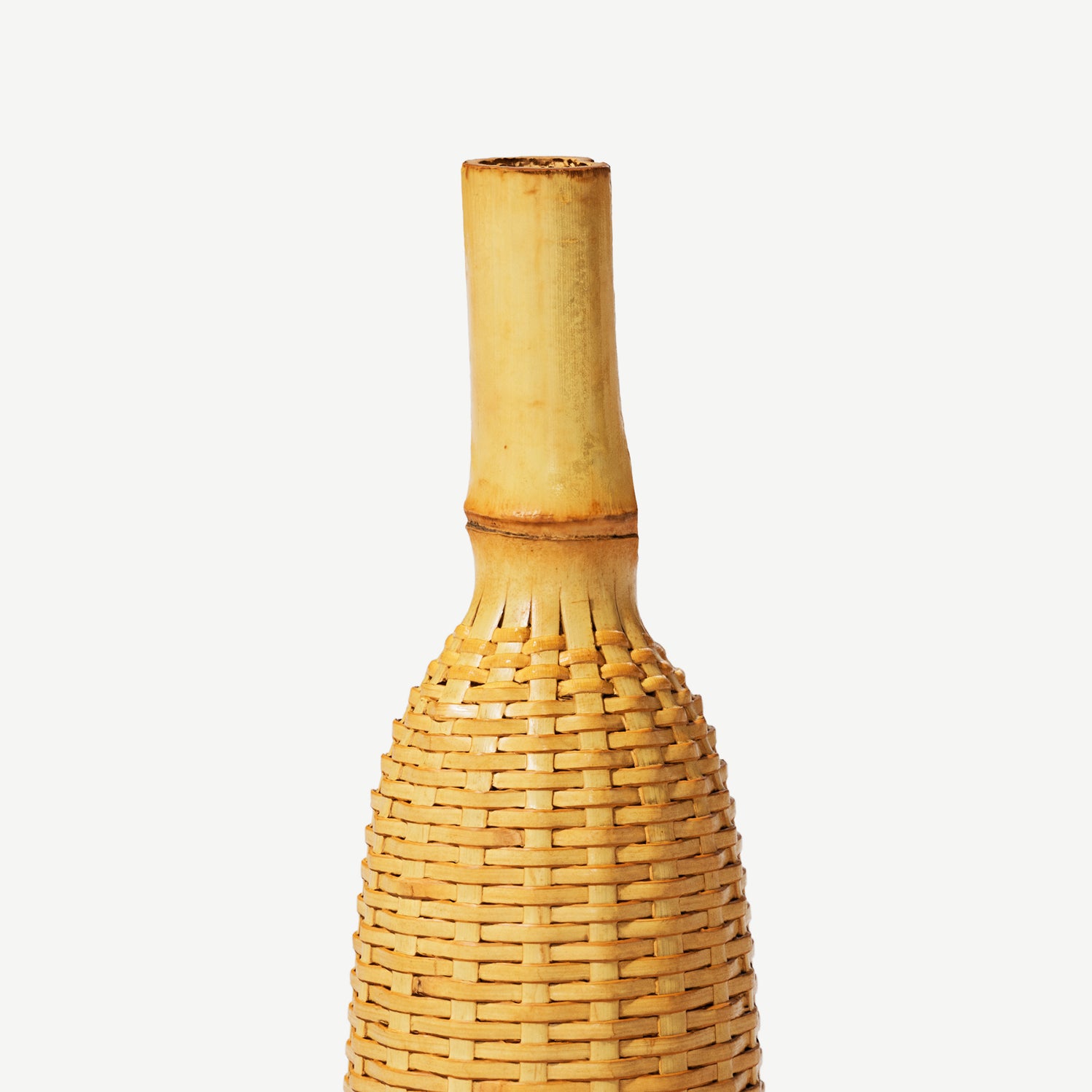 Its double-layered construction—an outer woven shell and an inner water-tight tube—offers both function and quiet elegance.The exterior features a tightly balanced weave, with the natural node of the bamboo left visible at the mouth, highlighting the material’s organic beauty.