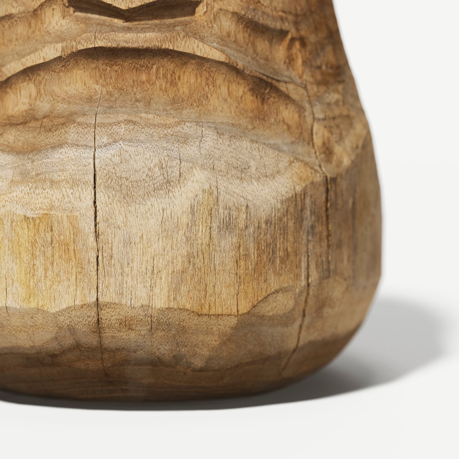 Over time, the wood has dried and developed deep cracks—traces of nature and age that lend the figure its distinct character.