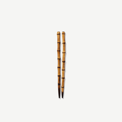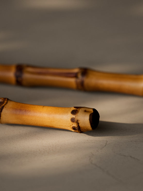 Handcrafted from the robust root sections of mature bamboo, these serving chopsticks celebrate the material’s natural beauty and strength. Each pair features gentle nodal ridges along the shaft, highlighting the subtle shifts in honey-brown and amber tones. The tips are finely tapered to grip even the most delicate morsels with ease, while the broader base offers a comfortable, balanced hold. A smooth, polished finish accentuates the grain and organic texture, making every pair uniquely individual. Ideal for presenting sashimi, transferring vegetables, or stirring communal dishes, these Root Bamboo Serving Chopsticks bring timeless Japanese craftsmanship—and a warm, earthy elegance—to your dining table.